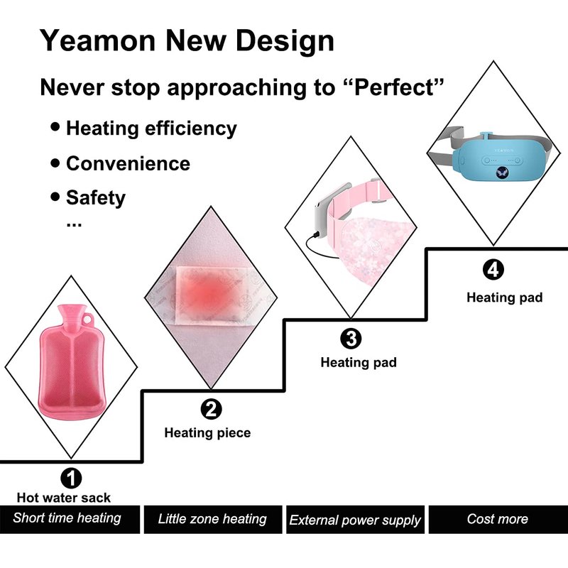 - Constant Improving: From hot water bottles to warm waist stickers, they are very limited to the human body. Compared with our previous product, the new generation of our heating pad costs more, but doesn’t require an external power supply. It just need to be fully charged in time, you can enjoy warmth.