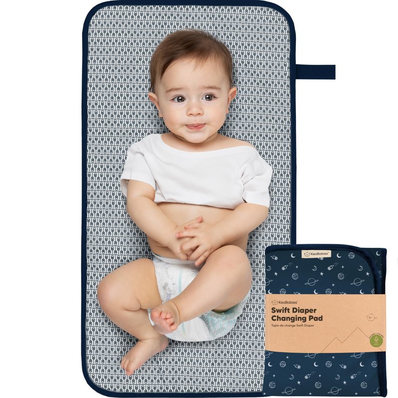 Parents, taking your little one out for the first time may seem daunting to you. Worrying about their next feed, soiled diapers, milk spit-ups and so much more. Have one less worry with KeaBabies SWIFT Diaper Changing Pad. It features a one-hand use design, which makes it easy to change your baby's diapers while you are out on your own with the baby. With our large and padded diaper changing surface, you do not have to worry about your baby touching the public diaper changing station.