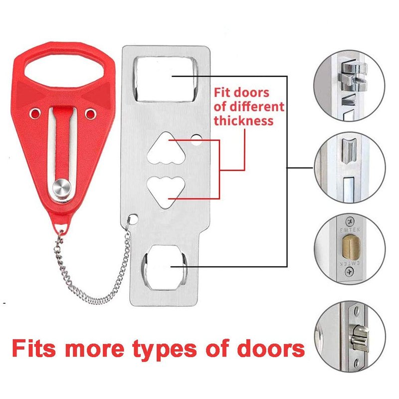 - 【Fits More Types Of Doors 】 When you are traveling or living alone, door security locks will help you keep hotel safety. You need only lock the door from inside with this portable door lock in the hotel. Portable lock for door works in hotels, motels, Airbnb, dorms, apartments, homes, short term rental, bathrooms, bedrooms and can lock most types of doors sturdily.