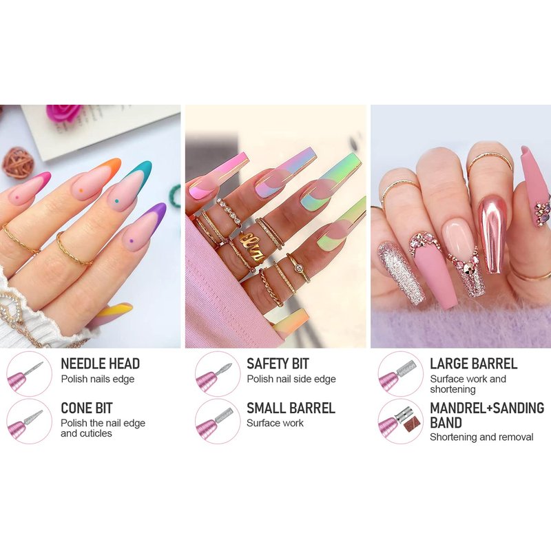 - 【Muti-functional Nail Drill Machine】There are different kinds of nail drill bits for you to do nail care to meet your different needs. For example, they can help you remove calluses, take off nail, exfoliate and scrub your nails, which make your nails look clean, shiny, smooth and flat.