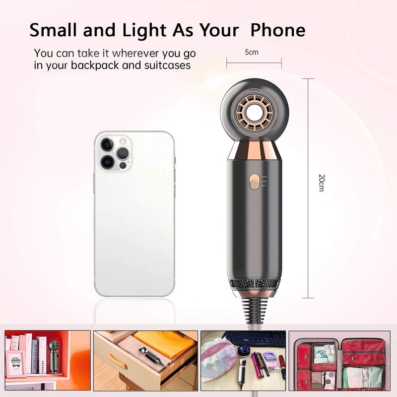 - Fashion Compact and Lightweight : The compact blow dryer is unique and gorgeous design, the handle size of traditional hair dryers , and is extremely portable, When you have it, belive you will love it , and ideal gift choice.