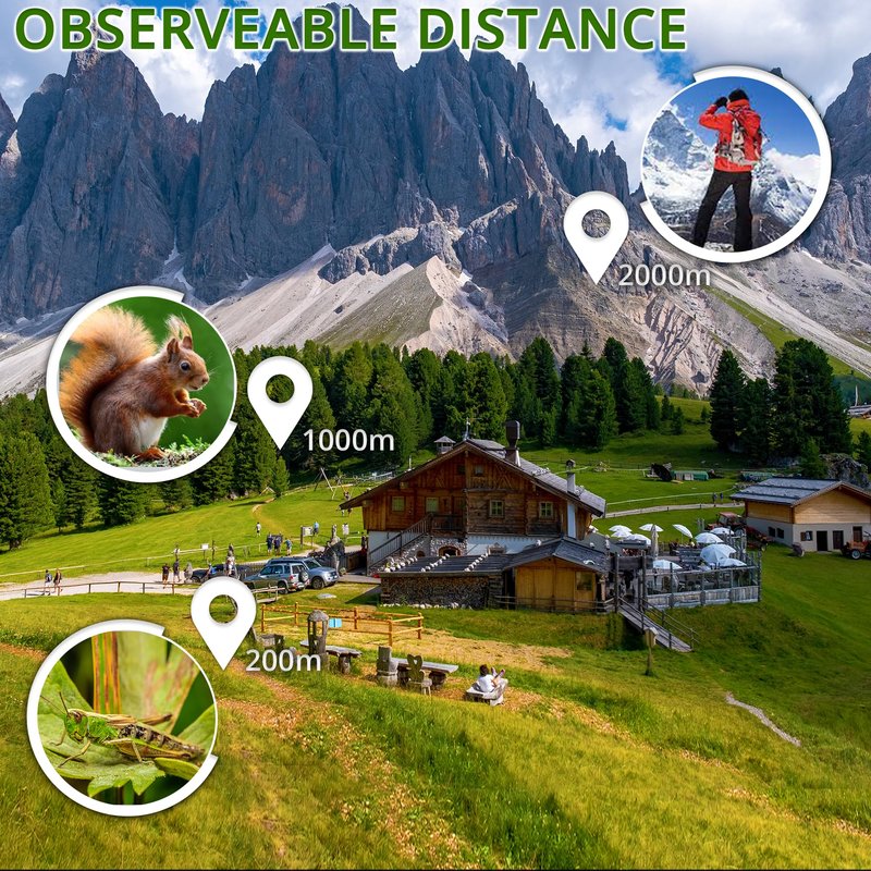 High-Power HD Vision - Dive into the world of unparalleled clarity with our high-power HD vision monocular scope built with superior BAK4 prism and enhanced with fully multi-coated green lens. Designed meticulously to serve the needs of bird watchers, hunters, and star gazers, this piece of art ensures that even the most distant subjects are brought closer in vivid detail. Smartphone Compatible - But why just view when you can capture? Seamlessly attach the monocular to any Android or iPhone with our versatile attachment and elevate your photography. It also comes with a solid tripod for stable viewing and recording. Adaptable Focus - Our monocular is designed for dynamic viewing, equiped with dual focus design with an easily adjustable focus dial and an eye cup which allows optimal viewing even while wearing glasses. Whether you're trying to snap a distant landscape, a rare bird, or a celestial wonder, our monocular provides a unique perspective to share with the world. Shifting your view from a distant bird to a sprawling landscape is no challenge, thanks to the adaptable focus that offers smooth transition for evey sight. Compact, Lightweight, Weather-Proof - Our telescope's compact and lightweight design ensures it becomes your trusty companion on every trip. It's thoughtfully designed to fit snugly in your pocket or backpack, ensuring you're always ready to capture the moment, even with one hand. When your kids are using it for camping, outings, sports activites, concerts or bird watching, given its solid build and light-weight, I am sure they can enjoy the experience to the fullest, even when exposed to rain and sun. Versatile Use - Furthermore, it's not just the seasoned enthusiasts or pro who benefit. The intuitive design ensures it's a hit with kids exploring their surroundings or adults on nature trails. From nature's splendours to concerts or stargazing, this monocular telescope is an invaluable tool for viewers of all ages at all occasions!