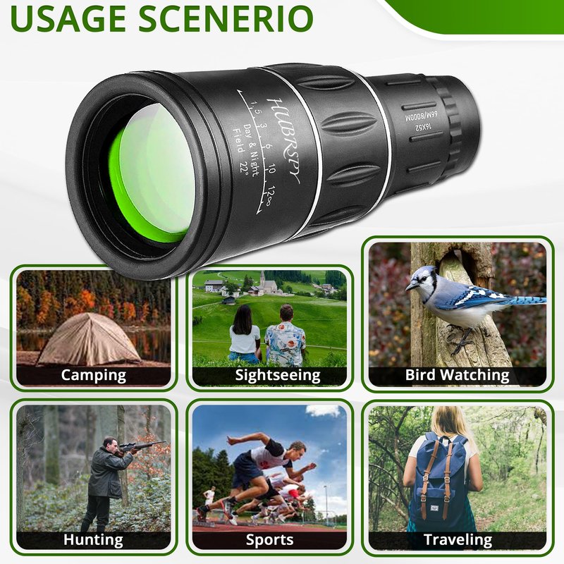 Portable High Power Monocular Telescope for Adults - 16x52 HD Light Weight Pocket Mini Compact Telescope for Smartphone Kids Bird Watching Hunting Concert Camping Starscope Cosmic Scope by HUBRSPY