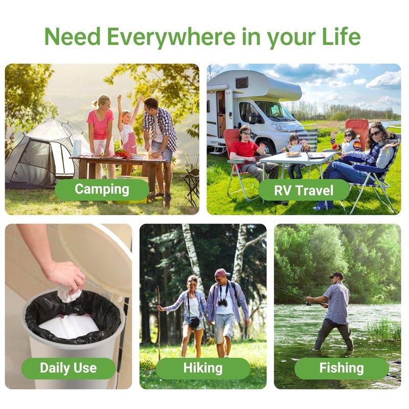 - 【Versatile and Compatible】Our camping toilet bags are opaque, so they can easily hide trash or the contents inside. It is strong enough for indoor and outside use. Perfect for Kitchen, Bathroom, Living room, Office, School, Yard, Car, Boat, Camping and Hiking. From food wastes to baby diapers and even garden wastes. The trash bags will handle the wastes perfectly.