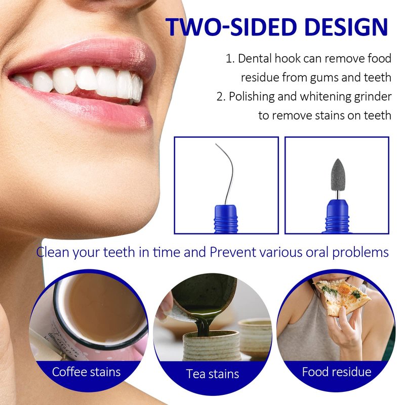 - 【Whiten You Teeth】 Besides being able to clean every corner of the front and back teeth, the polishing head on the double-ended tooth cleaning tool can be used to polish and whiten your teeth. It can remove surface tooth stains caused by coffee, tea, smoking, making your smile more beautiful.