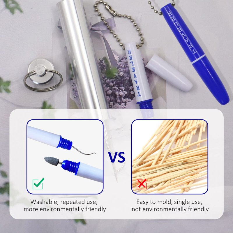 - 【Specifically Designed for Travel】 Our travel dental tooth pick is as small as an adult's finger, light weight, easy to carry. With two screw-on lids and one bead chain, you can hang it on keys, bags and wallets to use it anytime and anywhere.