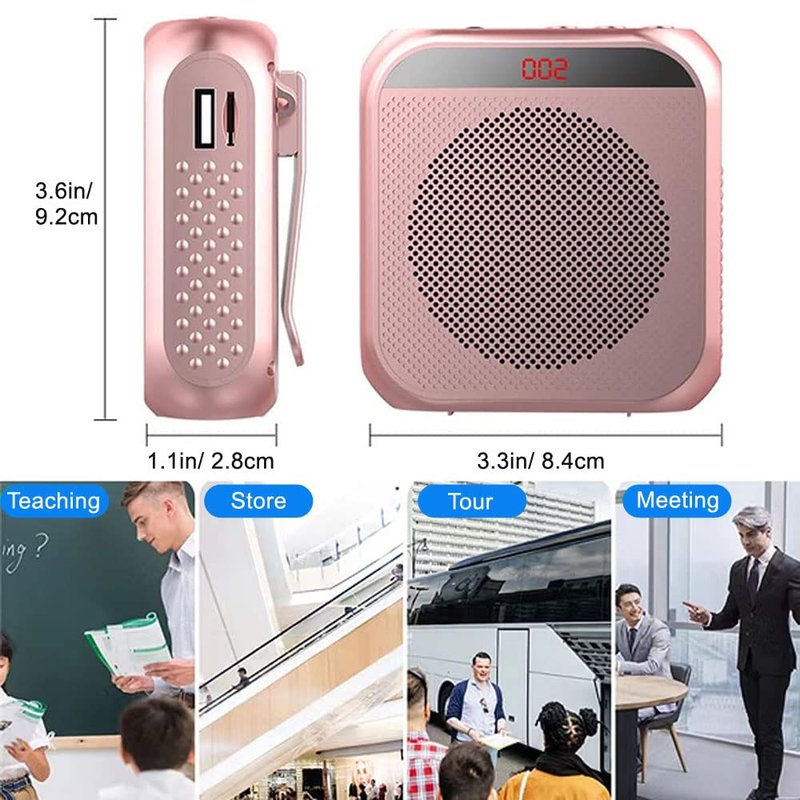 - 【Small Size and Powerful Sound】The personal voice amplifier is mini in size and light in weight (size 3.6 x 2.8 x 1 inches and weight 0.4 lb), but with up to 8W output crystal sound and no noise. the sound of microphone speaker is loud enough to cover a large room of 25-100 people. The stable performance perfect for amplifying your voice and saving your throat. A best portable amplifier for teaching, trainer, singer, coacher, tour guide, shopping mall, presentation, outdoor speech and etc.