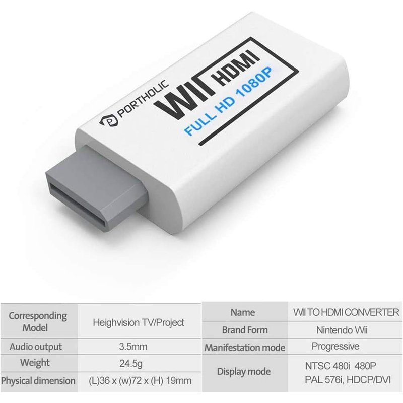 PORTHOLIC Wii to HDMI Converter 1080P for Full HD Device, Wii HDMI Adapter with 3,5mm Audio Jack&HDMI Output Compatible with Wii, Wii U, HDTV, Monitor-Supports All Wii Display Modes 720P, NTS