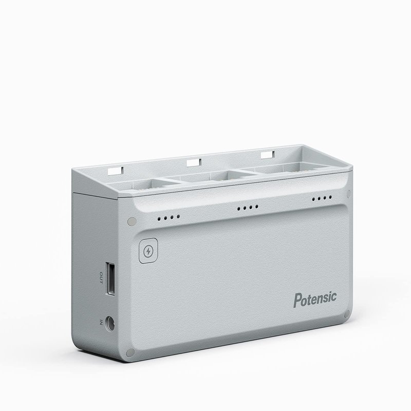 - The Potensic charging hub improves efficiency by fully charging all three batteries simultaneously in 90 minutes, and is capable of charging the remote control as well. (Please note that it takes the same amount of time to charge one battery as it does to charge three batteries together)