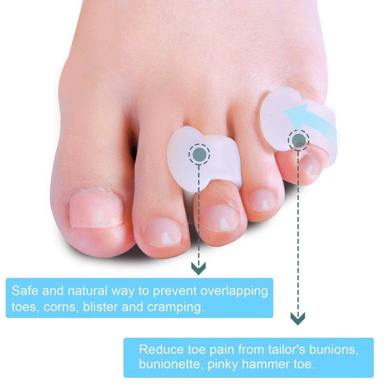 - Little toe separators can be worn on 3th and 4th toes, 4th and 5th toes. Safe and natural way to prevent overlapping toes, corns, blister and cramping and reduce toe pain from tailor's bunions, bunionette, pinky hammer toe. Thin spacer design would not allow it to straight or relign toe to original position.