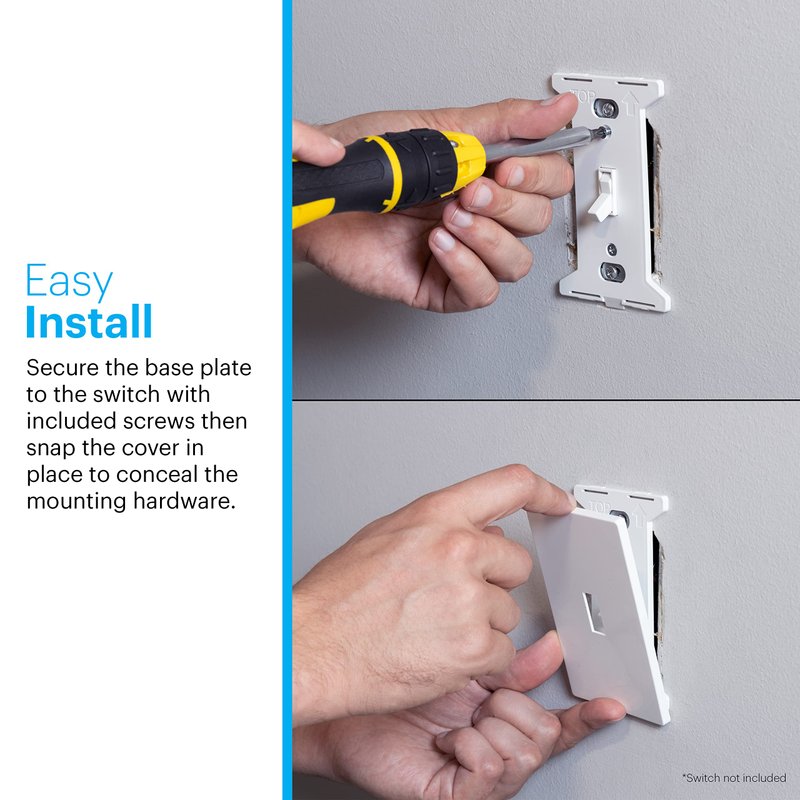 - Easy Installation – The base plate secures to the switch using provided screws and the cover snaps into place to conceal mounting hardware