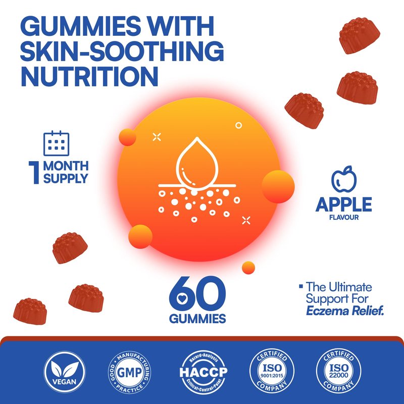 - Advanced Absorption & Efficiency: Formulated by American scientists, these sugar-free gummies feature 10x absorption technology for faster, more effective relief compared to traditional eczema pills. Each ingredient is expertly balanced to deliver maximum skin benefits quickly and efficiently.