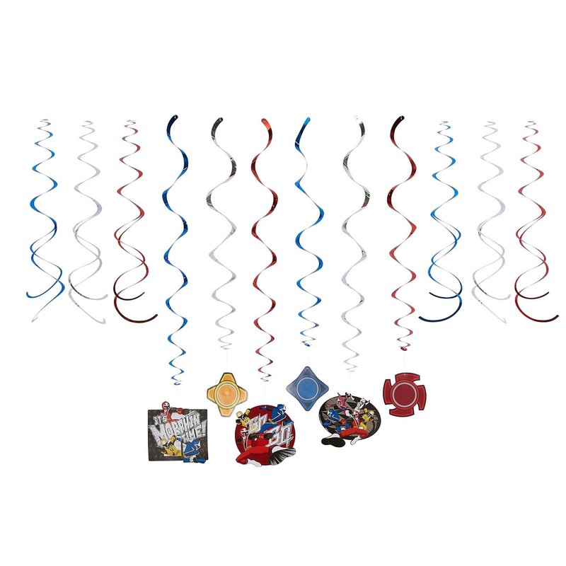 Power Rangers Birthday Party Supplies Bundle Pack includes Lunch Plates, Napkins, Table Cover, 12 Piece Hanging Swirl Decorations (Bundle for 16)