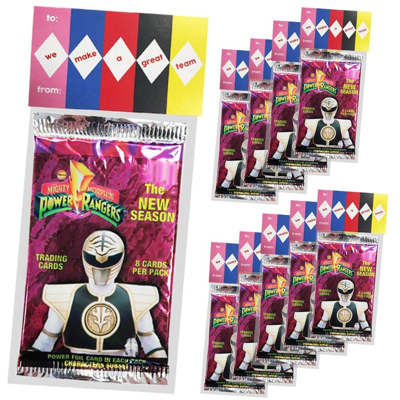 Power Rangers Party Favors, We Make A Great Team 10 Pack, New Power Rangers Party Supplies or Valentines Day Cards for Kids School Classroom Exchange, Creative Pre Assembled Gift Idea