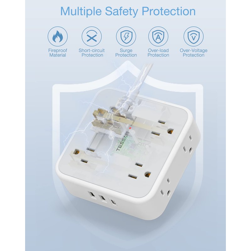 - Safety Features: This surge protector power strip features over-current, over-voltage, and short-circuit protection to help keep your devices safe. Additionally, it has a built-in circuit breaker that will trip if there is an overload or short circuit.