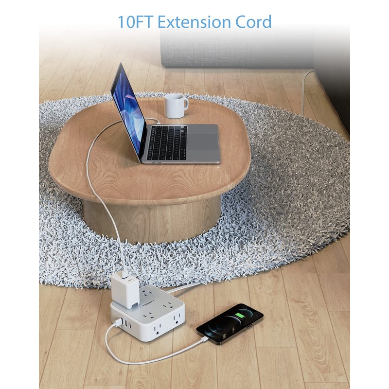 - Multiple Outlets: 8 widely spaced outlets provide ample space for multiple devices and adapters to be plugged in simultaneously without blocking adjacent outlets.3 USB chargers, including 1 USB C port, allow for convenient charging of smartphones, tablets, and other USB-powered devices without the need for additional adapters
