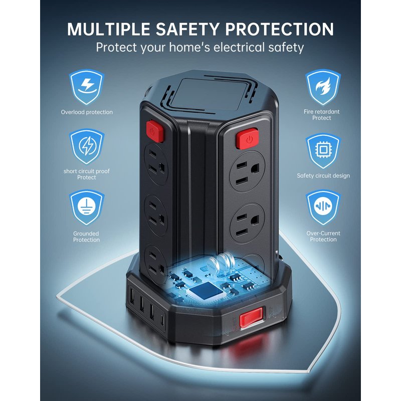 - 【Multiple Safety Protection】This surge protector power strip with USB has 1700j surge protection, overload protection, short-circuit protection, over-current protection, and so on; The power tower can automatically cut off the power when voltage surge is detected to protect your expensive devices like computers, TV at home, office, college dorm, etc.protection, over-current protection, and so on; The power tower can automatically cut off the power when voltage surge is detected to protect your expensive devices like computers, TV at home, office, college dorm, etc.