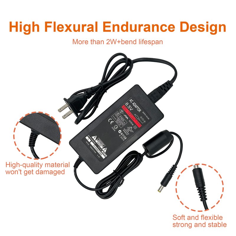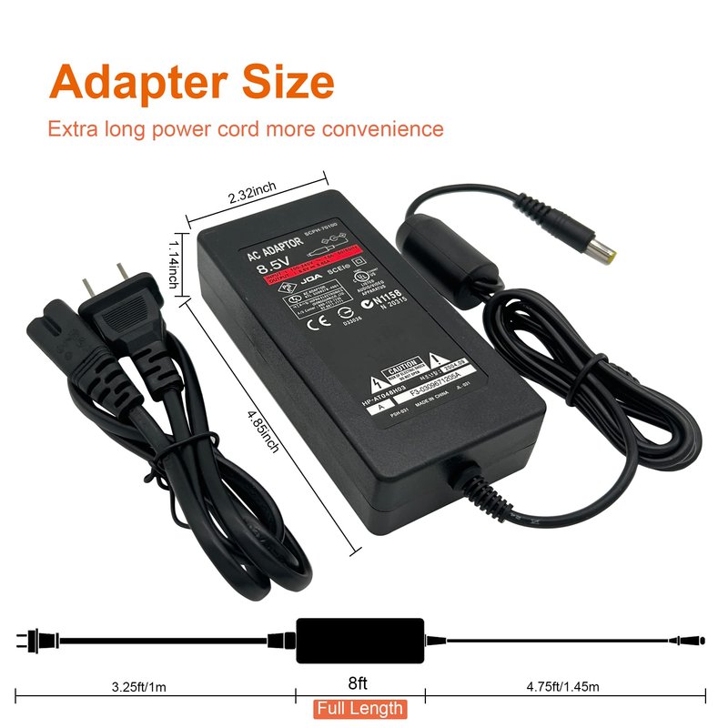 - 【Power Specifications】: Power cord for PS2 Slim, Input: AC 100-240V 50/60Hz; Output: DC8.5V 5.65A, Plug: US Plug; Cable Length: 4.75FT (AC Adapter)+3.25FT (Power Cord); Material: Metal+Plastic.
