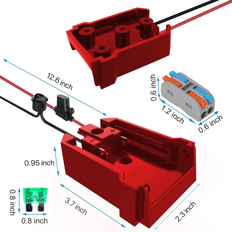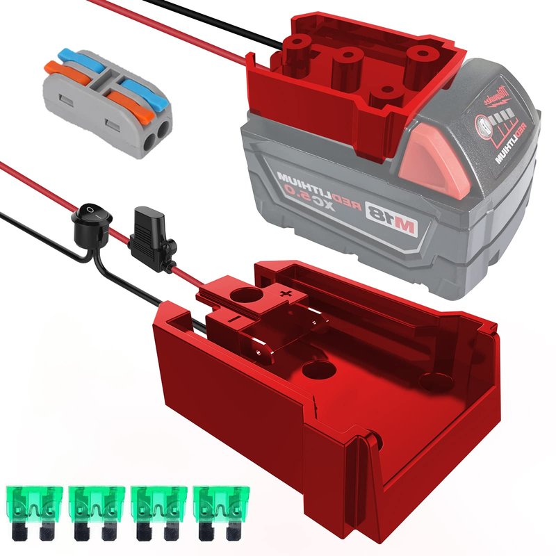 - High quality: Made of high-quality ABS Plastic, injection-moulded, excellent scratch&shock resistance and chemical resistance and is impervious to heat, moisture, and corrosion, perfect for indoor and outdoor use. Package included: 1 X Milwaukee 18V battery adapter, 1 X wire terminal, 4 X 30A fuse&4 X screws. 1-year replacement service!