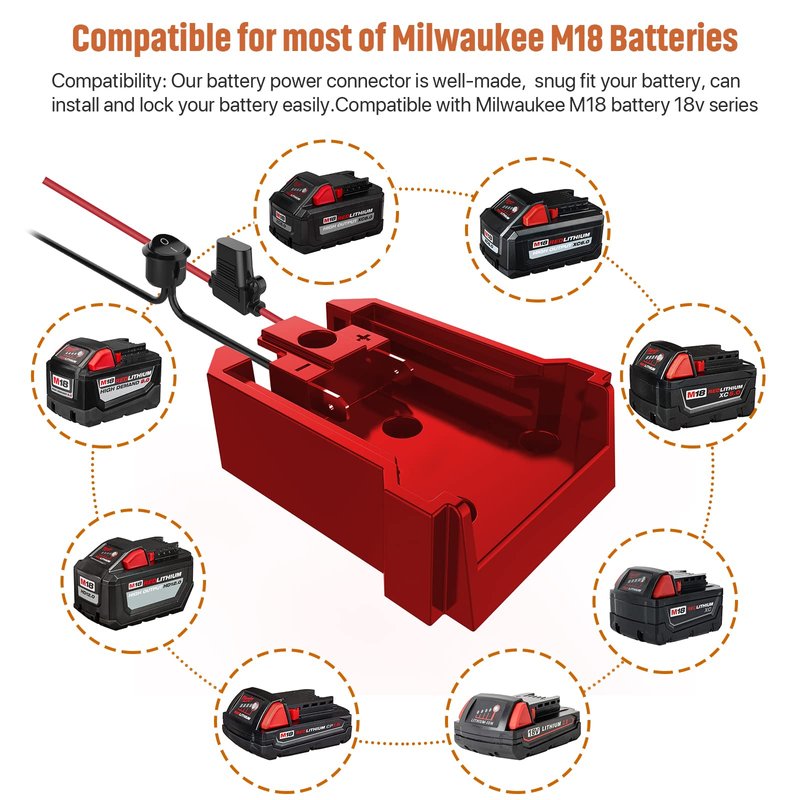 - Compatibility: Our battery power connector is well-made, snug fit your battery, and can install and lock your battery easily. Compatible with Milwaukee M18 battery 18v series.