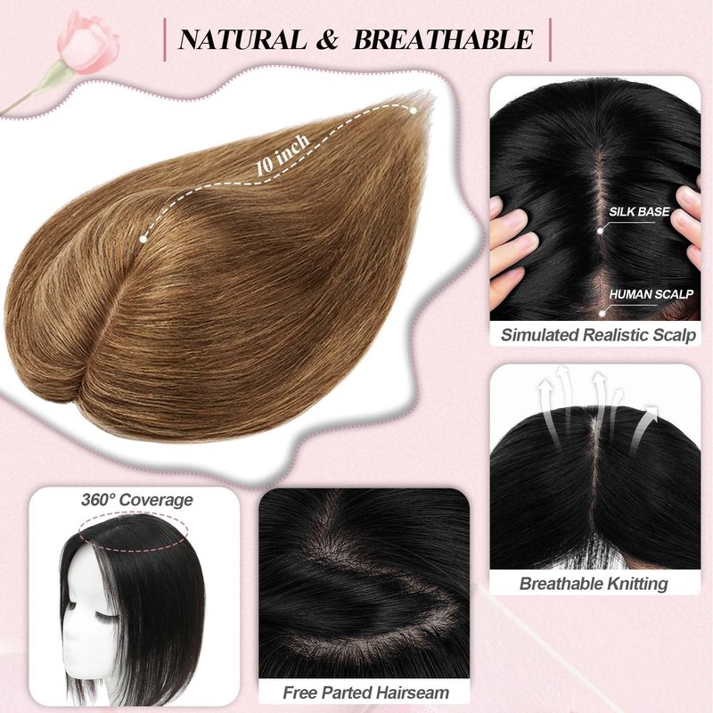 - 【Made of 100% Real Human Hair】Our human hair toppers for women with thinning hair is made of handpicked remy hair,the texture is more soft, smoothly and tangle free. Human hair topper is available for bleaching, dying, perming and styling, human hair crown toppers will blend in your own hair well, looks natural and charming.