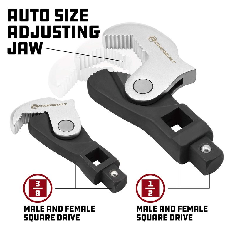 Powerbuilt 2 Piece Spring-Loaded Crowfoot Wrench Set, Adjustable, Auto Size, Universal, Self-Adjusting, Power Grip , Rapid Wrench- 240274