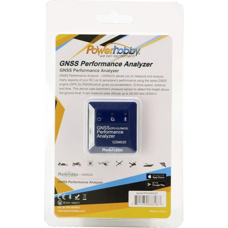 The Powerhobby GNSS Performance Analyzer Bluetooth Speed Meter & Data Logger makes it easy to see who really is the fastest. How many times have the bragging sessions gotten out of hand? Now, you can prove your RC car or plane is the fastest on earth! The app-enabled GNSS Performance Analyzer in an affordable, compact device that will give you a cutting edge to measure the overall performance of your model accurately. Use the free app on your iOS or Android device, strap the GNSS Analyzer to your car, and get real time updates of how fast you are really going. The device is small at just 40x39x16mm, and weighs just 38 grams. Plus, an internal antenna allows easy mounting in any model. Additionally, the GNSS does a lot more than just display speed - read on to see how the GNSS Analyzer can benefit your need for speed..