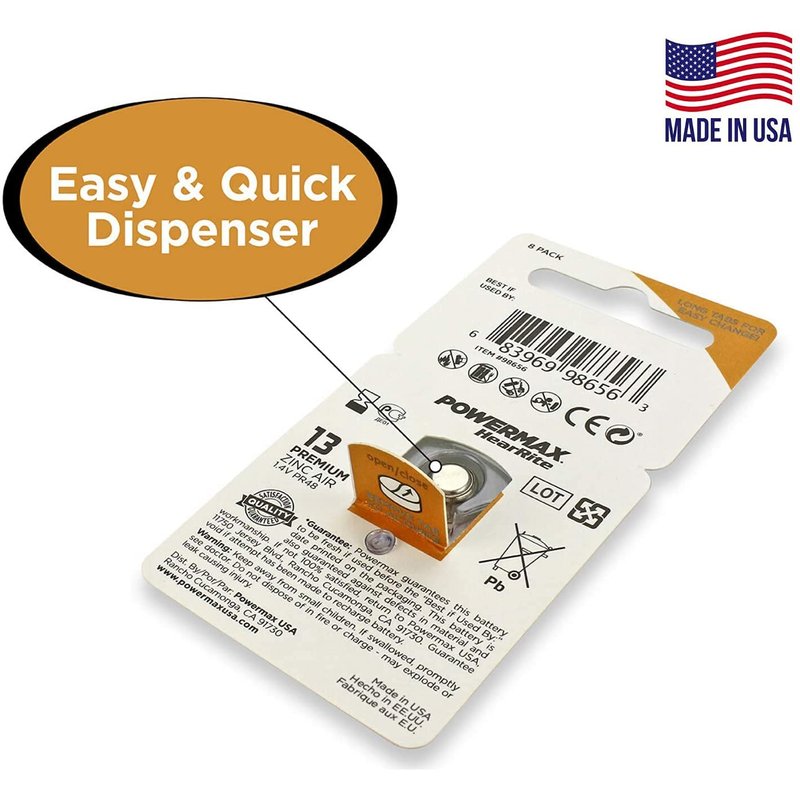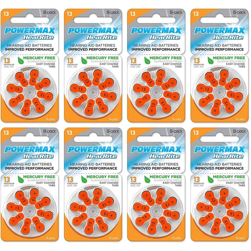 Powermax Size 13 Hearing Aid Batteries, Orange Tab, 64 Count