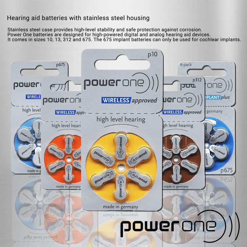 Featuring with its consumer-focused extra long tabs, Power One batteries are manufactured at the world's most up-to-date and biggest production site for hearing aid batteries in Ellwangen/Germany—well recognized for manufacturing quality and detailed precision. Subject to Germany's stringent safety guidelines and quality checks, every cell is tested for its electrical and mechanical characteristics in compliance with its specification.