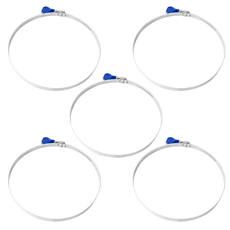 POWERTEC 70250 6 Inch Key Hose Clamp, Thumb Screw Key Adjustable Stainless Steel Hose Clamps for Dust Collection, Dust Collector and Dryer Vent Hose, Pipe Clamp, RV Clamp, Worm Gear Clamp, 5 pack