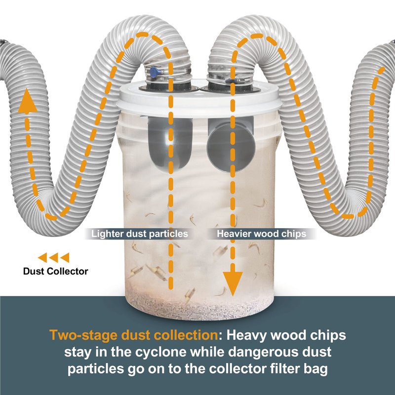 - FUNCTION: Provides you with a set of easy-to-install components to create your very own 2-stage dust collection system