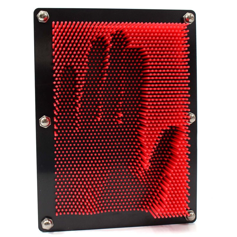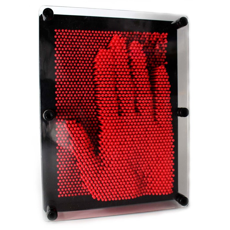 PowerTRC 3D Pin Art Sculpture - Pin Impression Toy - Pin Impression Hand Mold - Great Toy for Kids (6" x 8" Red)