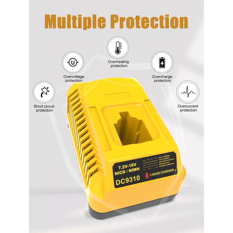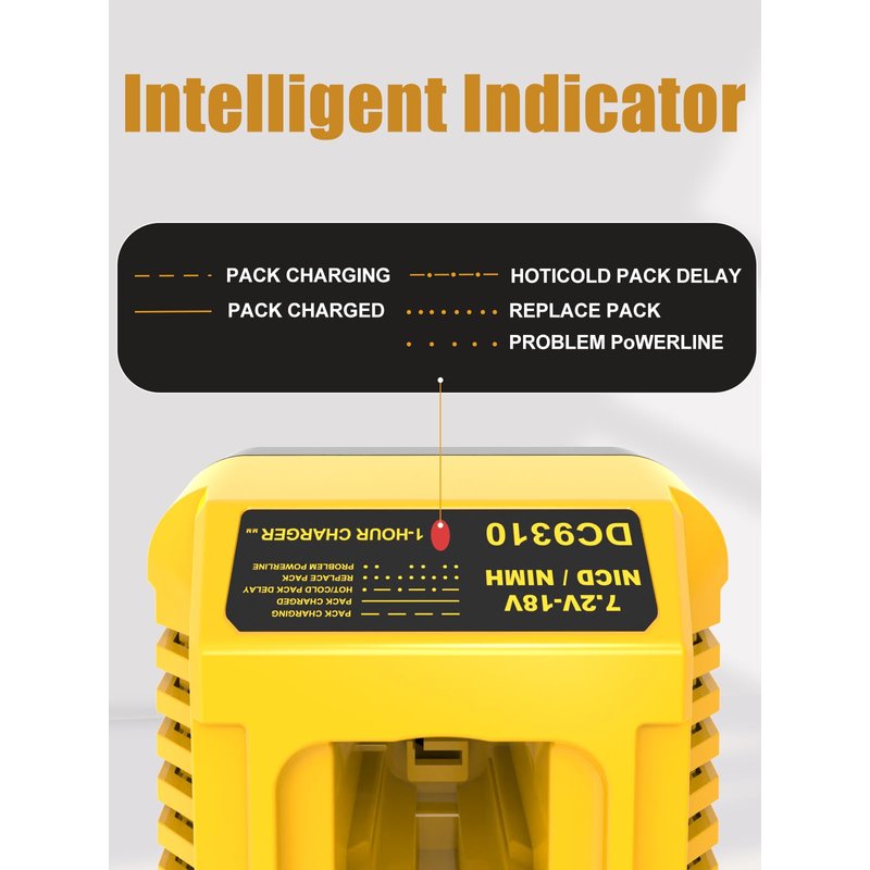 Powilling Battery Charger DC9310 for DEWALT 7.2V-18V NiCad & NiMh DC DW XRP Series Battery
