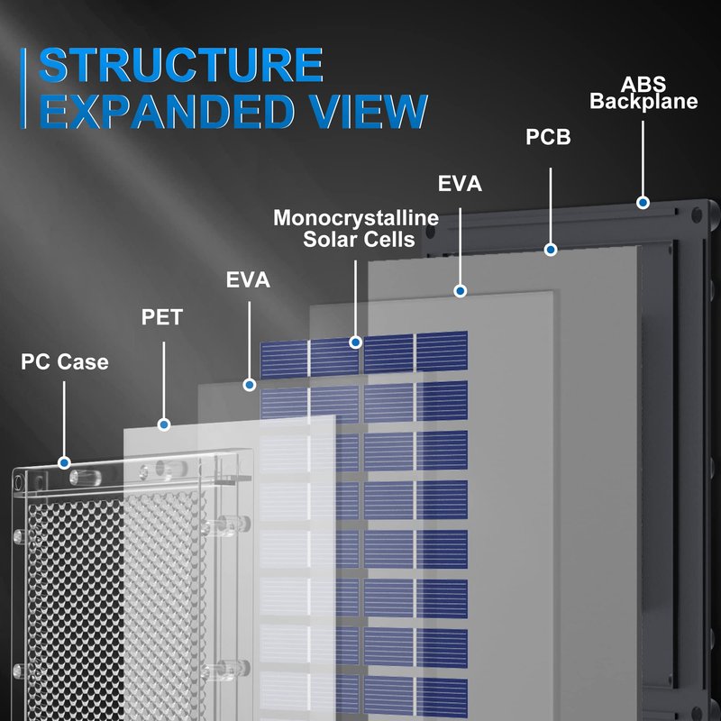 - 【Tough Polycarbonate Casing】This solar charger uses transparent polycarbonate material, very tough and anti-falling. Meanwhile, transparent material has high transmittance and achieves a better charging effect.