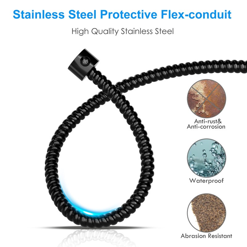 - 【Protective Stainless Steel Flex-conduit】The wires of the solar battery charger controller go through the steel flex-conduit, it's hard to break.