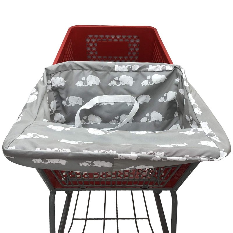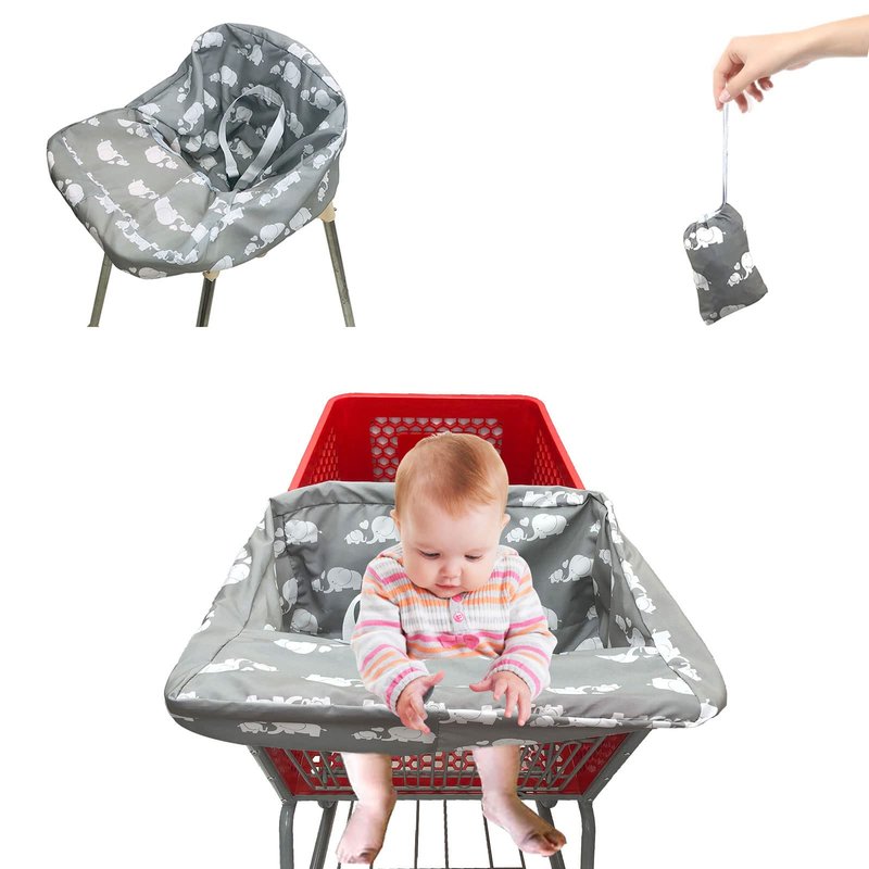 Pozico Portable Shopping Cart Cover for Baby & High Chair Cover, Machine Washable Replaceable Cart Cover for Babies, Infant, Toddler, Boy or Girl(White Elephant, Grey)