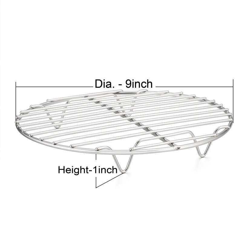 - 【TWO PACK】Two same sized racks, With 9 -inch diameter and 1-inch height, Fit air fryer, stockpot, pressure cooker, and canning, Perfect to bake cookie, cooling cake, steam egg and roast chicken, and filter oil, keep table away from hot pot bottom