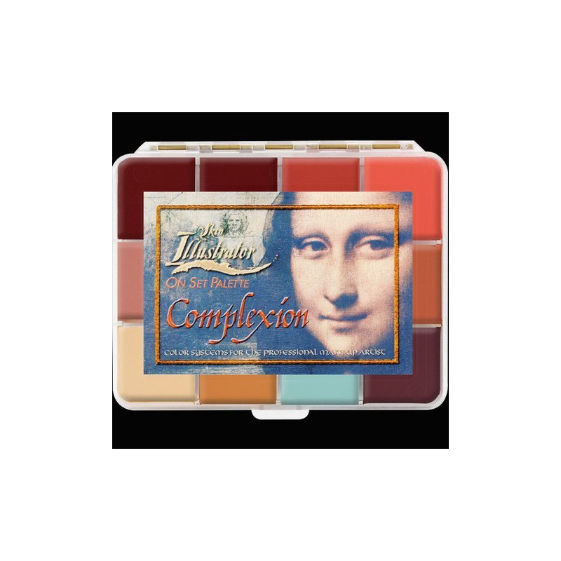 The Skin Illustrator On Set Complexion Palette is a mini version of the classic full size Skin Illustrator Complexion Palette. It has become an industry standard. This compact, pocket size palette contains the full ten colors of the larger Flesh Tone palette, but also an additional Rice Paper and a Vein Tone for that extra bit of color needed to make touch ups fast and easy. This palette is a must for any makeup FX artist. Use it alone, or in combination with other On Set Palettes. The colors can easily be applied with a brush or mascara wand (palette cells may be too small to apply color with a sponge). Use it alone, or mix the colors with any of the other Skin Illustrator tones to create your own unique blend of color. You must use Skin Illustrator Activator, Skin Illustrator Slow Activator, or 99% alcohol to activate the color pigment. Do Not use 70% alcohol, MEK, acetone, water or any other solvent.
