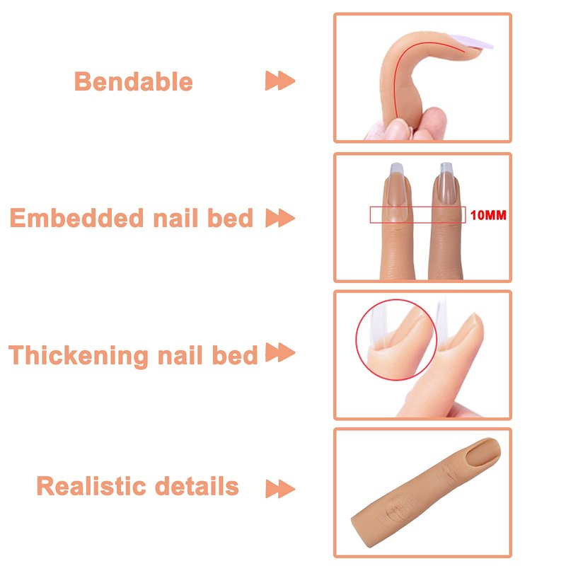 - Bendable: The silicone nail training finger is soft and flexible, the finger has built-in bones that can be bent at various angles as needed, it is soft and touches like jelly.