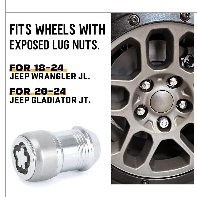 PQY Wheel Locks Locking Lug Nuts Kit with Key 82215711 Replacement for Jeep Wrangler JL 2018-2023 Gladiator JT 2020-2023