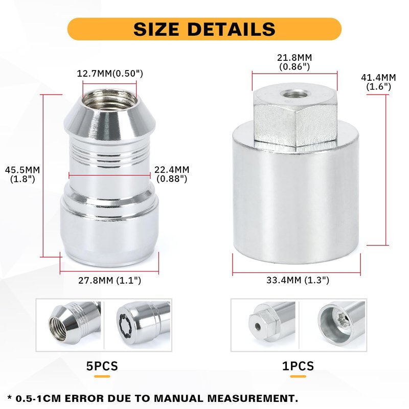 - Package include: 5pcs wheel nuts +1pcs key