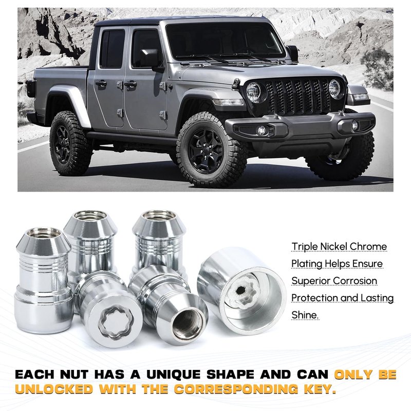 - Anti-theft desgin: Every piece wheel lock nut in kit has different pattern and shape.
