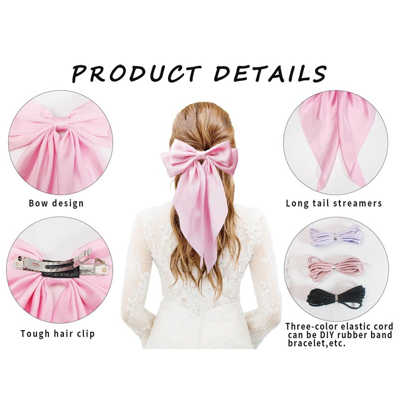 - Cute Hair Accessories: Silky Satin Hair Bows are charming hair clips,Stretch thread can be made into DIY accessories,thoughtfully designed to suit various hairstyles and age groups. Whether it's a cute ponytail or an elegant updo, these hair clips add a unique touch.