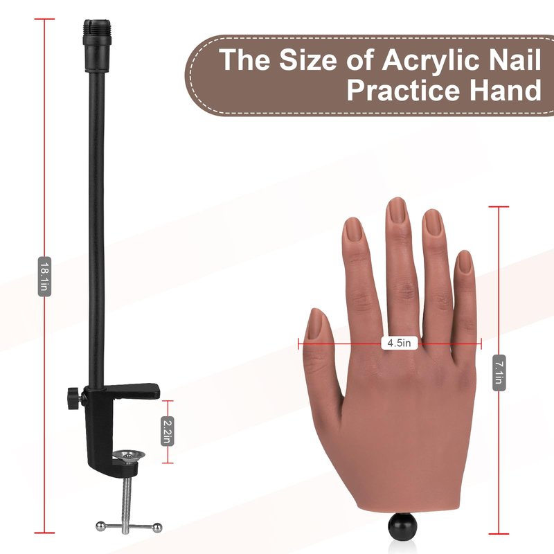 Practice Hand for Acrylic Nails,Nail Practice Hand with Stand Bracket, Flexible Bendable Silicone Nail Practice Fake Hand, Nail Training Mannequin Hand for Acrylic Nails for Beginners, Nail Tech
