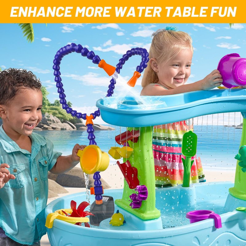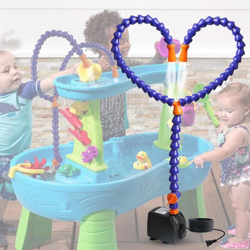 - RELEASE HANDS & UNLOCK FUN: Our kids water table water pump solves the problem of needing to manually refill the water and realizes water circulation. The dual pipes can supply water in any position, create splashes and waterfalls, and also effectively conserve water. Explore more water table fun with your kids together!