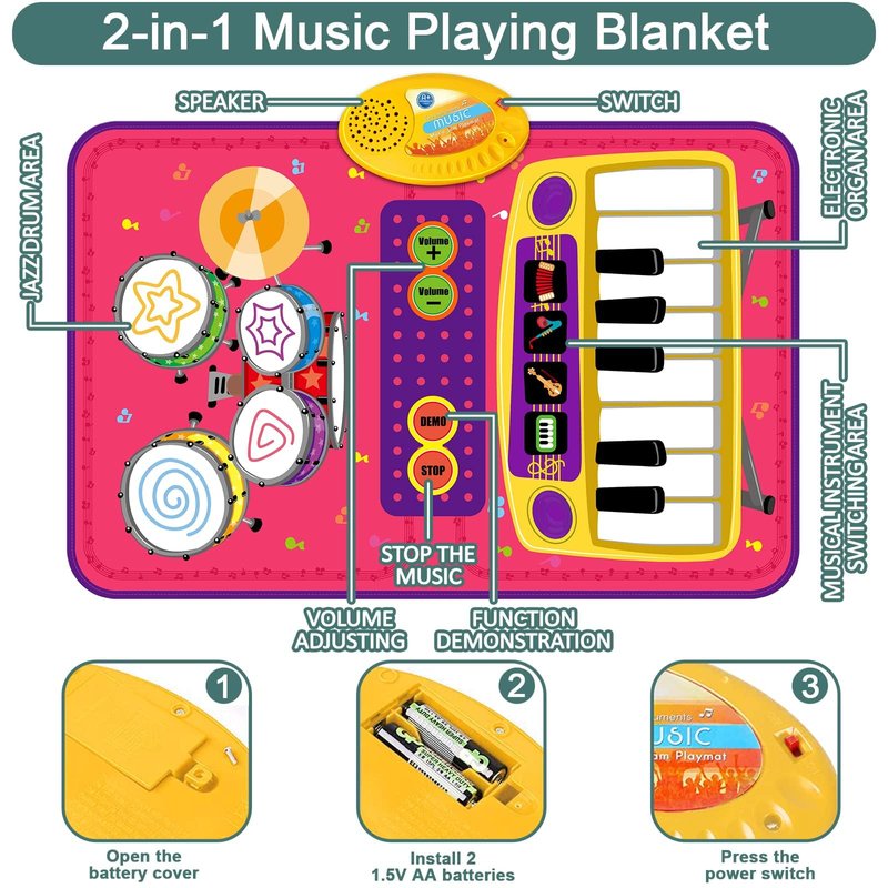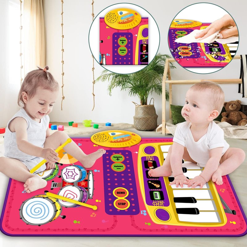 - Perfect Baby Girl & Boy Gifts: The PRAGYM piano mat is a great musical toys for ages 0-2. Piano and drum 2 in 1, specially designed for families with twins, so that 2 children can play together and create more wonderful music. It is an ideal Christmas and first birthday gifts for one year old girl and boy.