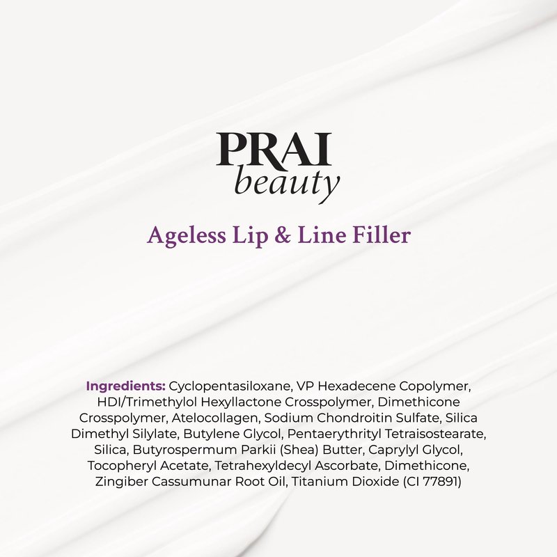 - Lip Serum Infused with Shea Butter - PRAI Beauty Ageless Lip and Line Filler contains Marine Filling Spheres that instantly plump and fill-in lines and wrinkles, and Shea Butter that creates a long-lasting barrier to lock-in moisture