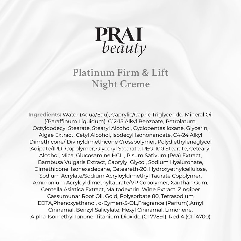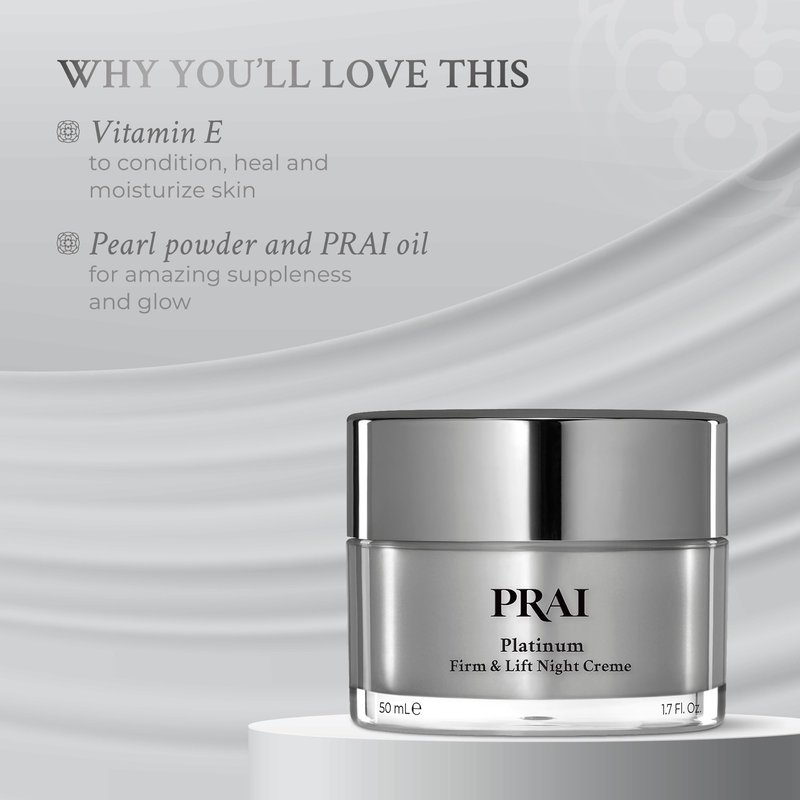 PRAI Beauty Platinum Firm & Lift Night Creme, Anti-Aging and Hydrating Night Face Moisturizer for Women, Hydrating and Revitalizing Night Cream, Overnight Face Lotion, 1.7 Oz
