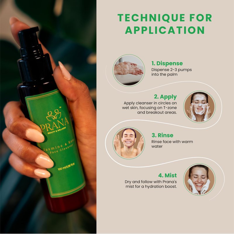 - Prana's Face Cleanser, infused with the essence of Rose and Jasmine, creates a gentle yet effective cleansing experience for all skin types. Jasmine provides a calming fragrance, promoting a soothing and delightful cleansing process while Rose moisturizes and delivers antioxidant protection, contributing to enhanced skin health and a revitalized complexion after each use.