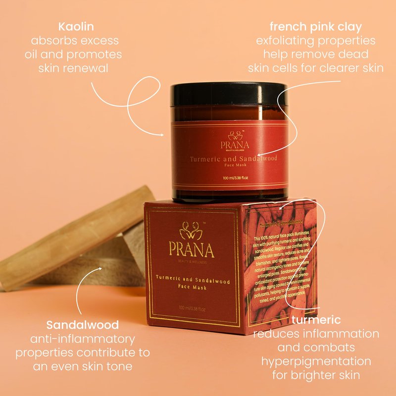 - Prana's Turmeric and Sandalwood Face Mask is a 100% natural blend harnessing the purifying properties of turmeric and the soothing essence of sandalwood, allowing you to pamper your skin with the goodness of nature for visible and lasting results